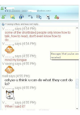 In uppercase letter lagi tu. I started to feel the excitement. Yeye.. Huiyo, marah betul dia ni. Oh, after you put sarcastic remarks on those SELECTED people, then when i reply like that you want to get angry la? Haha..I'm loving this moment babeh..